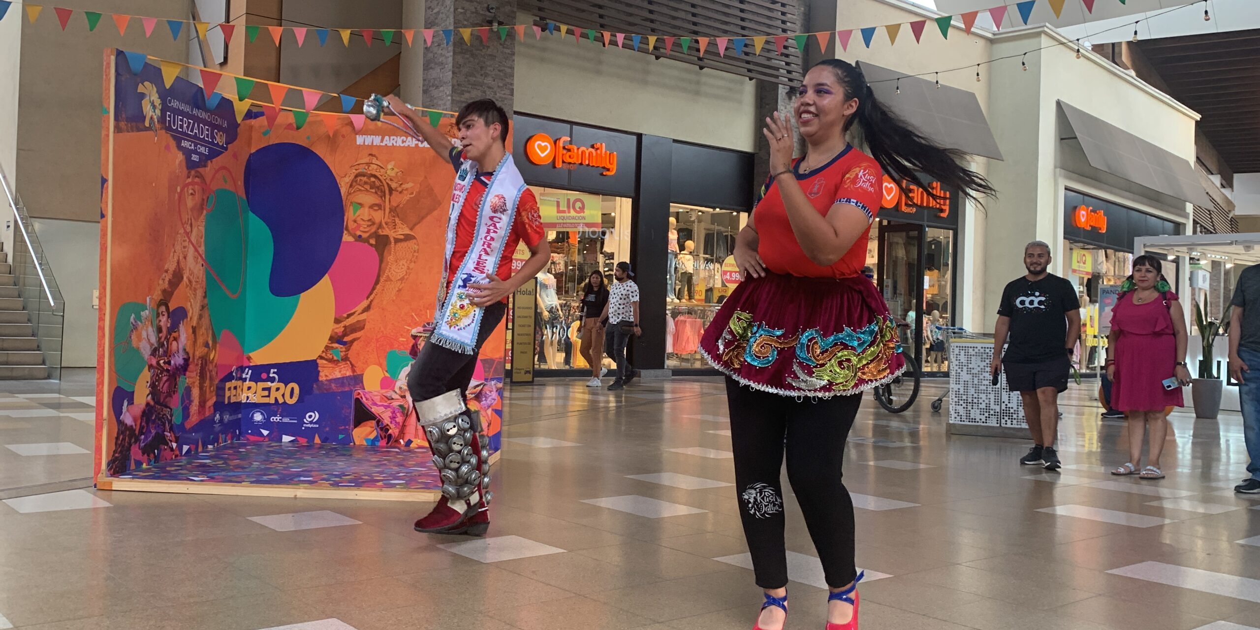 La Corporación Municipal Costa Chinchorro preparó estas activaciones en conjunto con MallPlaza Arica para entregar una muestra de danzas junto a ñustas e inkas y de esta manera motivar las energías a dos semanas de volver a vivir el Carnaval luego de dos años